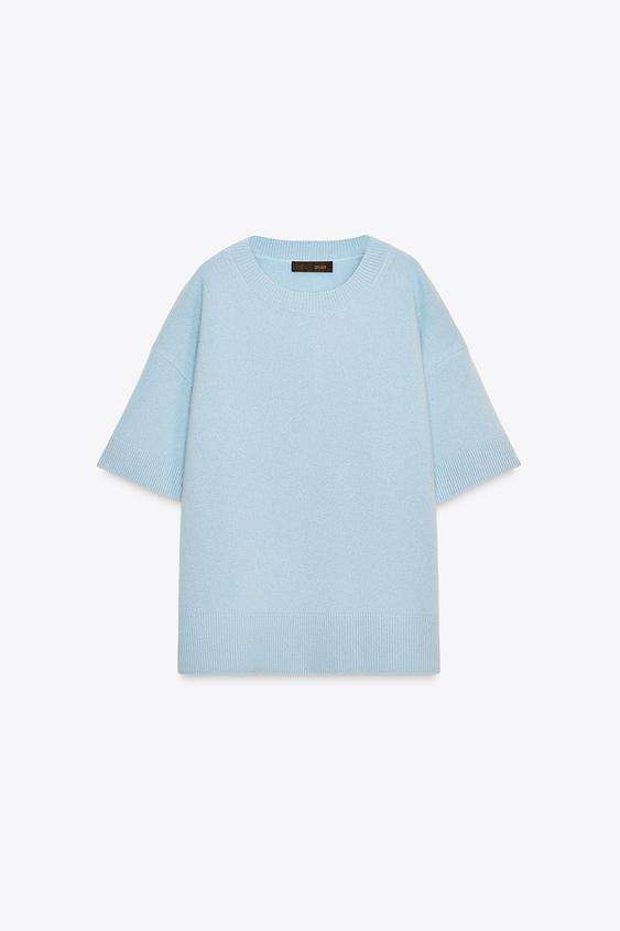 Kako bi postigla efektan kontrast, lijepa pravnica posegnula je za laganim pletenim puloverom kratkih rukava u pastelno plavoj nijansi. Model predimenzioniranog kroja dio je nove kolekcije španjolskog high street diva Zare, a cijena mu iznosi 50 eura.