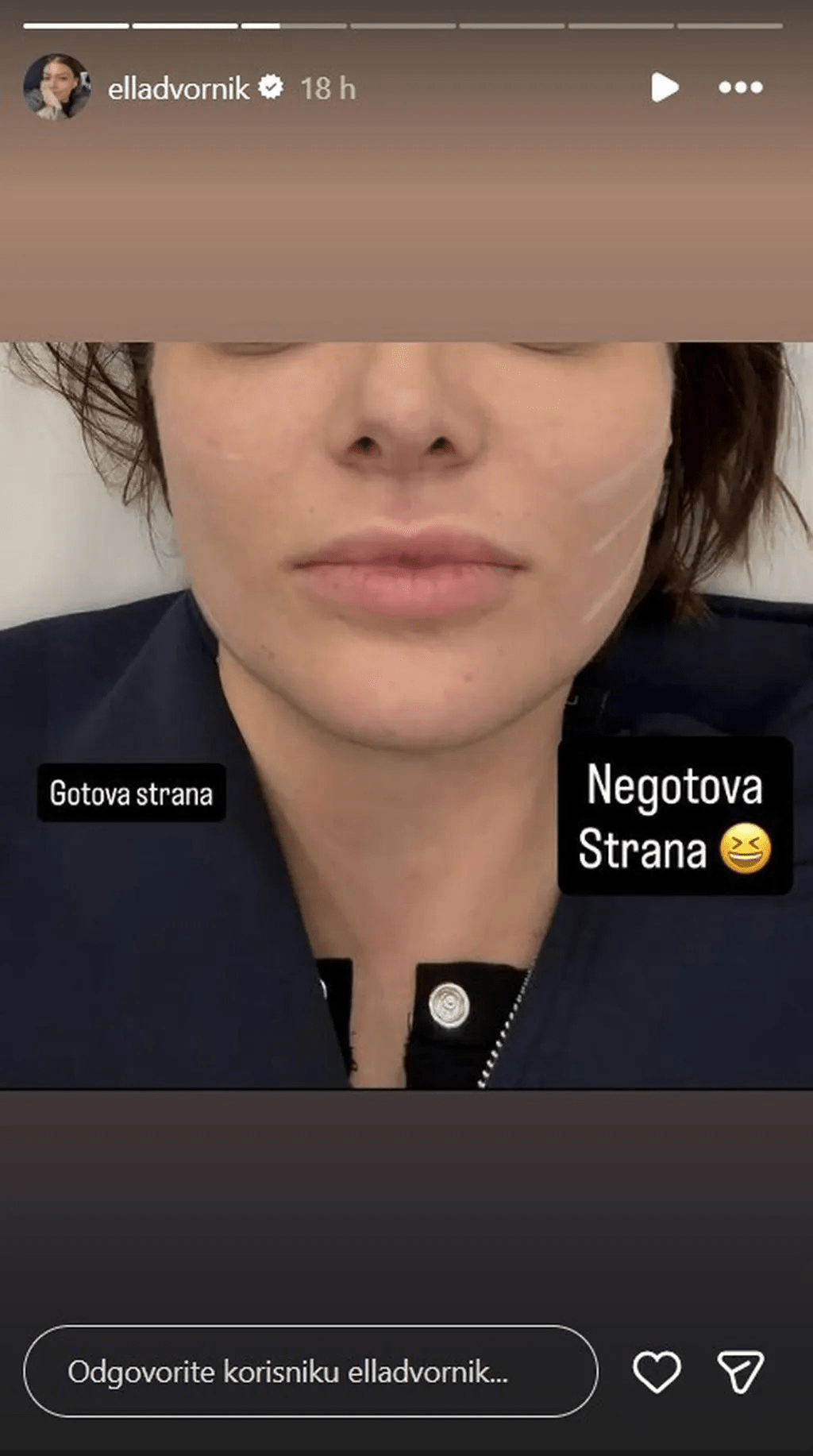 Na svom Instagram profilu, gdje je prati više od pola milijuna ljudi, Ella Dvornik objavila je niz videozapisa iz poliklinike u kojima je pratitelje povela sa sobom, od priprema, preko samog zahvata, pa sve do vidljivih rezultata.