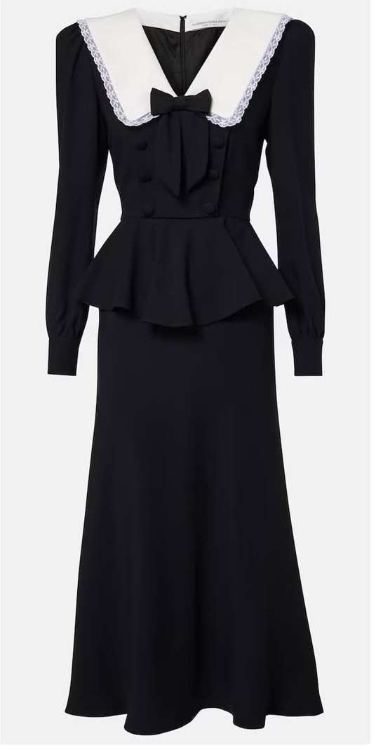 Za ovu svečanu prigodu, 43-godišnja Kate Middleton odabrala je besprijekorno elegantan crni midi model Alessandre Rich, haljinu od čipke i svile s prepoznatljivim bijelim ovratnikom i peplum siluetom.