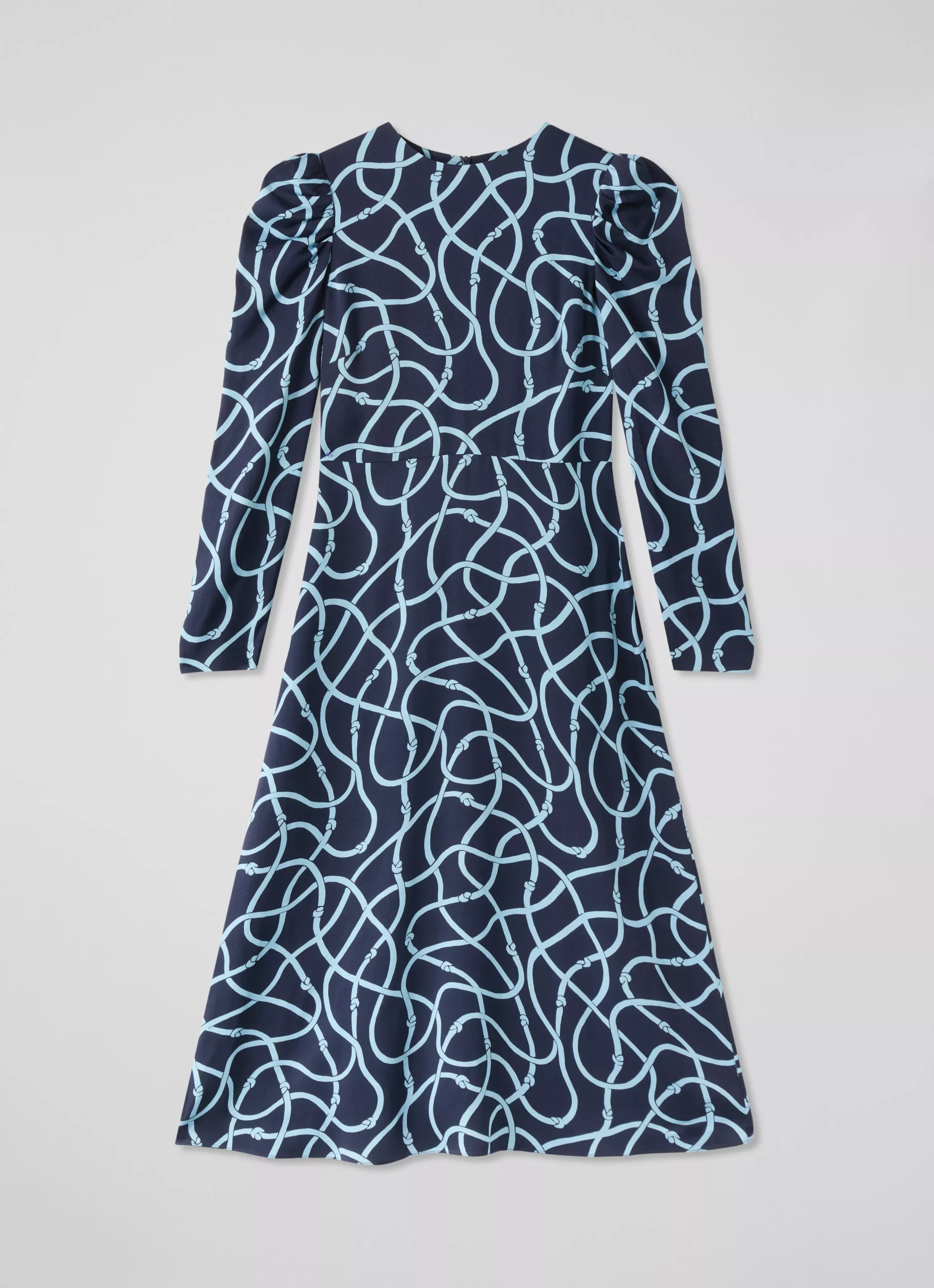 Riječ je o midi haljini profinjene siluete, s decentnim uzorkom i naglašenim ramenima, koja savršeno naglašava liniju tijela i djeluje iznimno elegantno, ali nenametljivo.