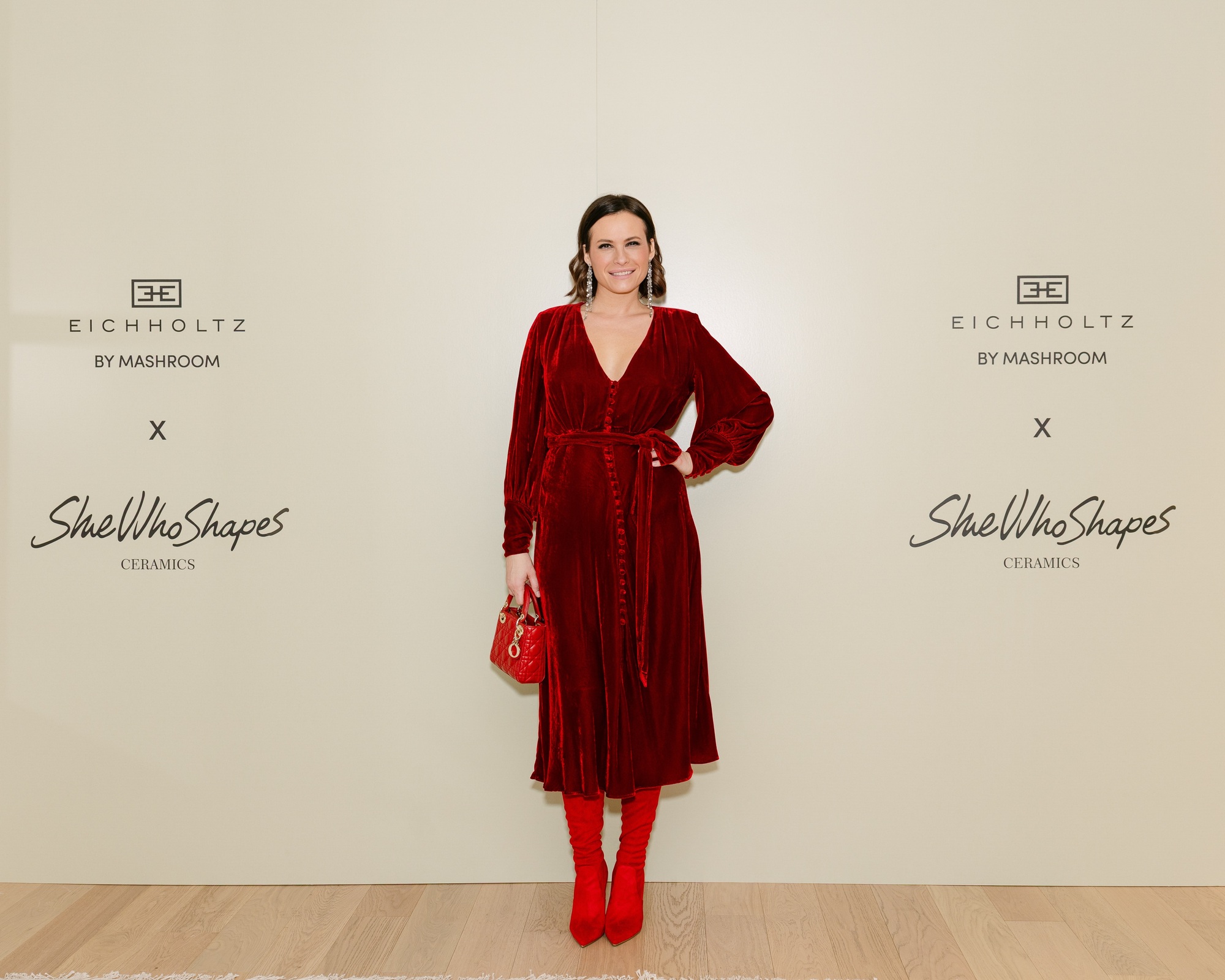 Na otvorenju monobrand storea Eichholtz by Mashroom, Kristina Bradač Radić pojavila se u haljini koja je idealan primjer zašto je prosinac mjesec raskošnih tekstura. Odabrala je baršunastu midi haljinu u dubokoj bordo nijansi, izrađenu od baršunastog materijala.