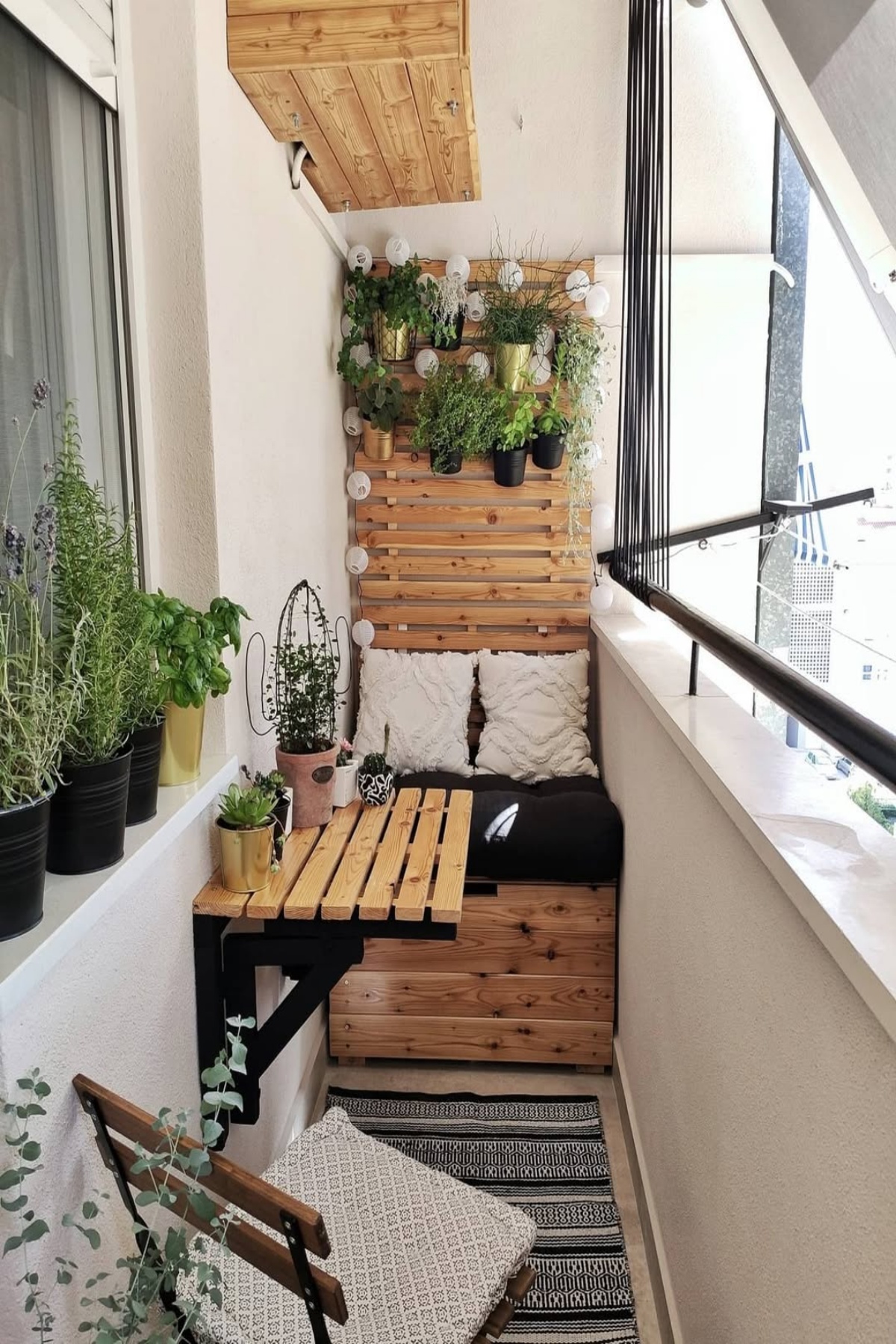 Osim velike terase s bazenom, vikendica obitelji Filipović ima i prostrani balkon s drvenim ormarom i metalnim bijelim stolicama retro dizajna.