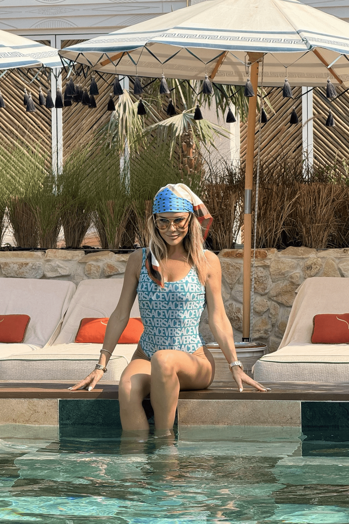 Fotografija koju je podijelila prikazuje idiličan prizor: infinity bazen okružen palmama i gustom vegetacijom, drvenu terasu s ležaljkama te trenutak bezbrižnosti koji savršeno opisuje njihov odmor.