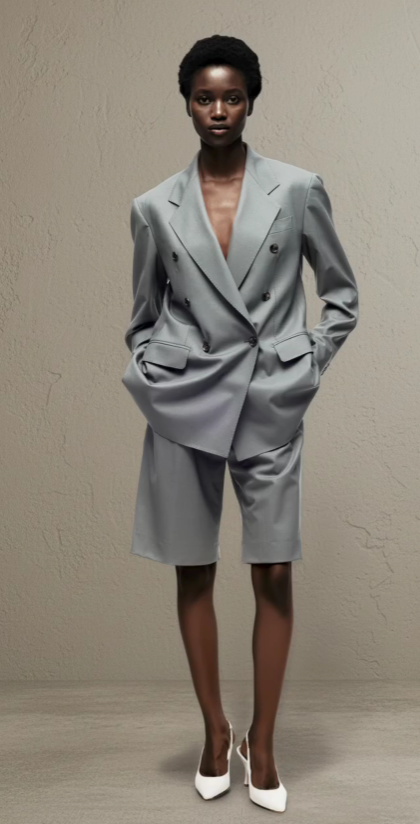 Ako tražite maksimalan komfor i neosporivu dozu coole efekta, sivo Tagliatore odijelo s bermudama je vaš savršeni odabir. Ovaj spoj muške siluete sakosa na dvostruko kopčanje i modernih bermuda do koljena ultimativni je trend sezone. Moćno, neočekivano i nevjerojatno trendi, ovo odijelo garantira vam titulu najodvažnije gošće. Ispod sakoa možete odjenuti samo svileni bralette top ili ga nositi potpuno zakopčanog, u kombinaciji s minimalističkim bijelim štiklama, baš kao na fotografiji.