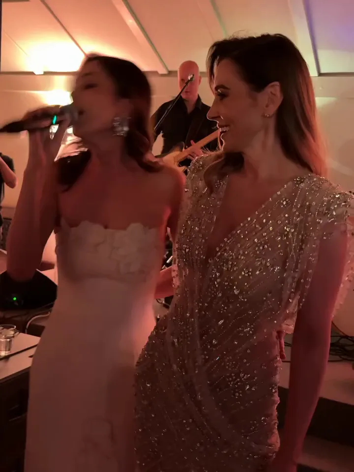 Uz srebrne dekoracije i prepoznatljiv stil, slavljenica i njezina kuma plijenile su poglede svojim modnim odabirima. Andrea je blistala u prozirnoj haljini optočenoj kristalima koja je naglasila njezinu figuru, dok se Severina odlučila za bezvremensku eleganciju u bijeloj boji. Njezina haljina s upečatljivim cvjetnim aplikacijama odisala je svježinom i romantikom, savršeno prateći ton ove večeri.