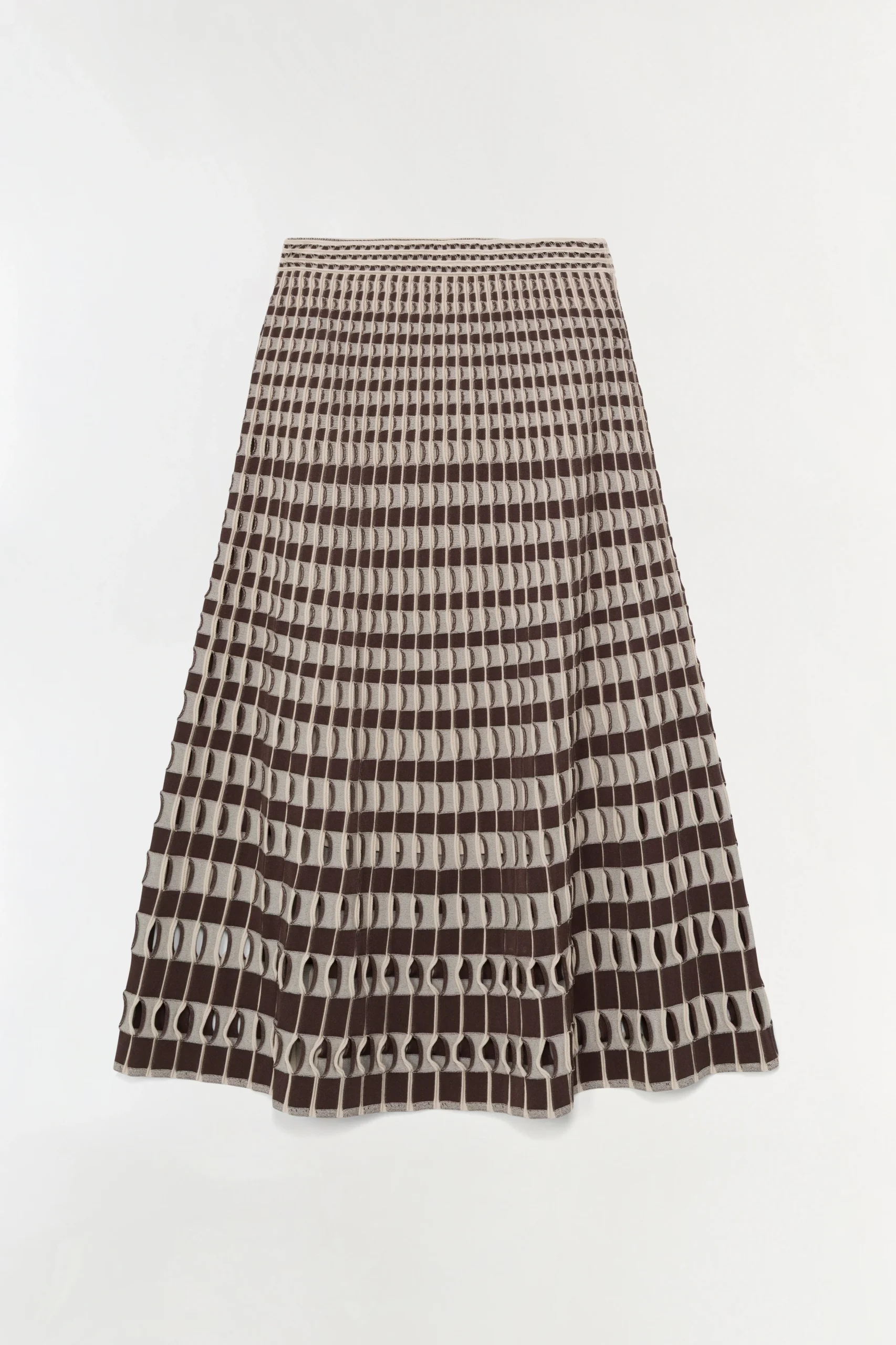 Za ovu prigodu Tia je odabrala upečatljiv set američkog luksuznog brenda Simkhai, sastavljen od fino pletenog kardigana i suknje s grafičkim uzorkom koji vizualno izdužuje siluetu.